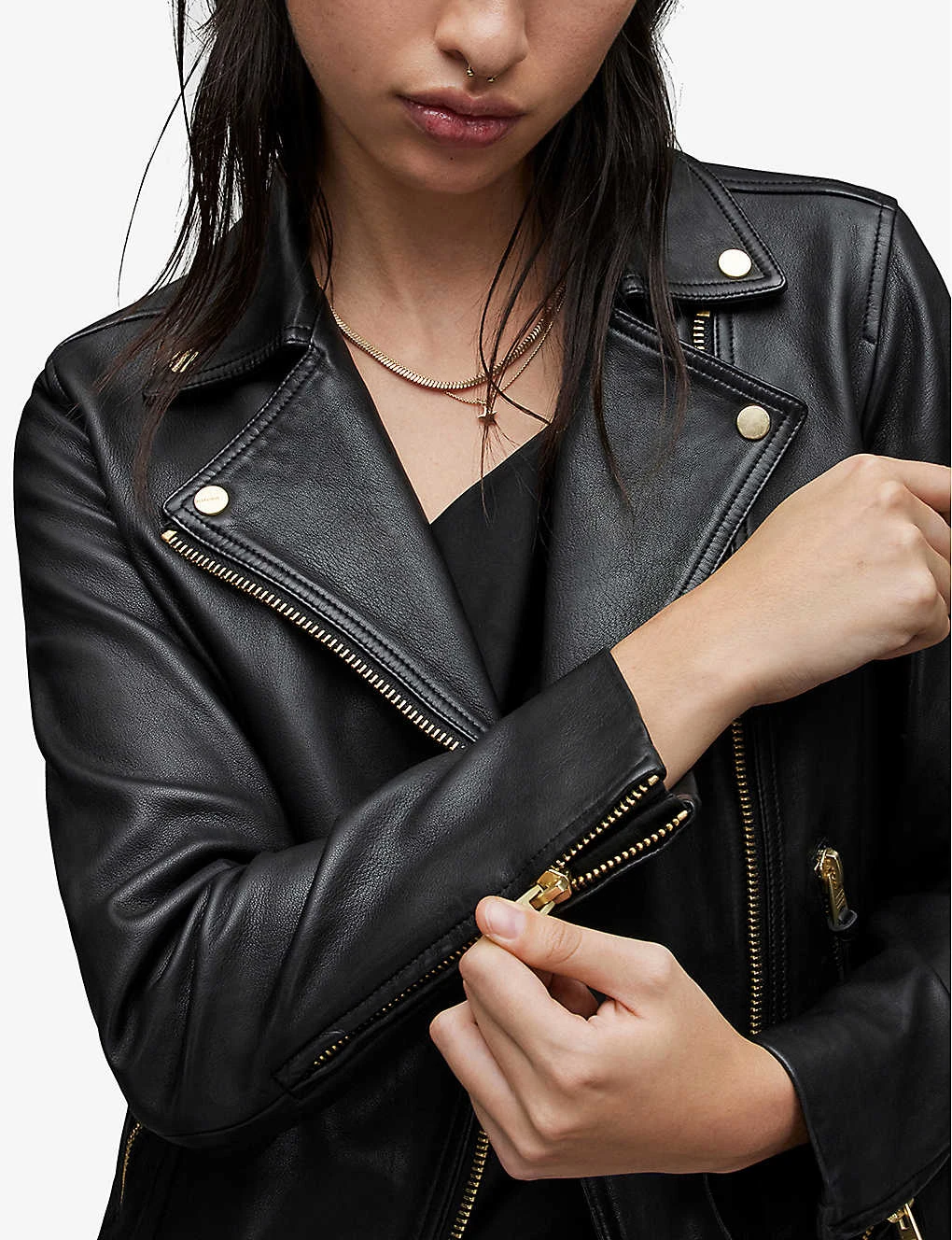 AllSaints Dalby Gold-tone Hardware Leather Biker Jacket