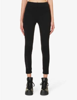 Brand-embossed Slim-fit High-rise Stretch-woven Leggings