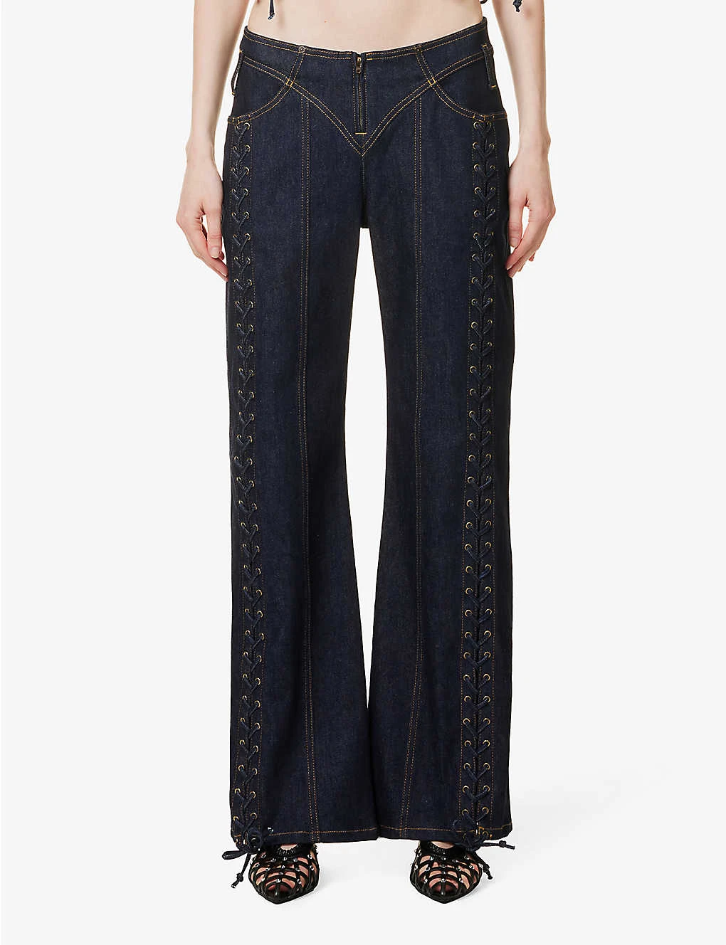 Jean Paul Gaultier Contrast-stitch Patch-pocket Straight-leg Low-rise Cotton-blend Jeans