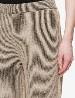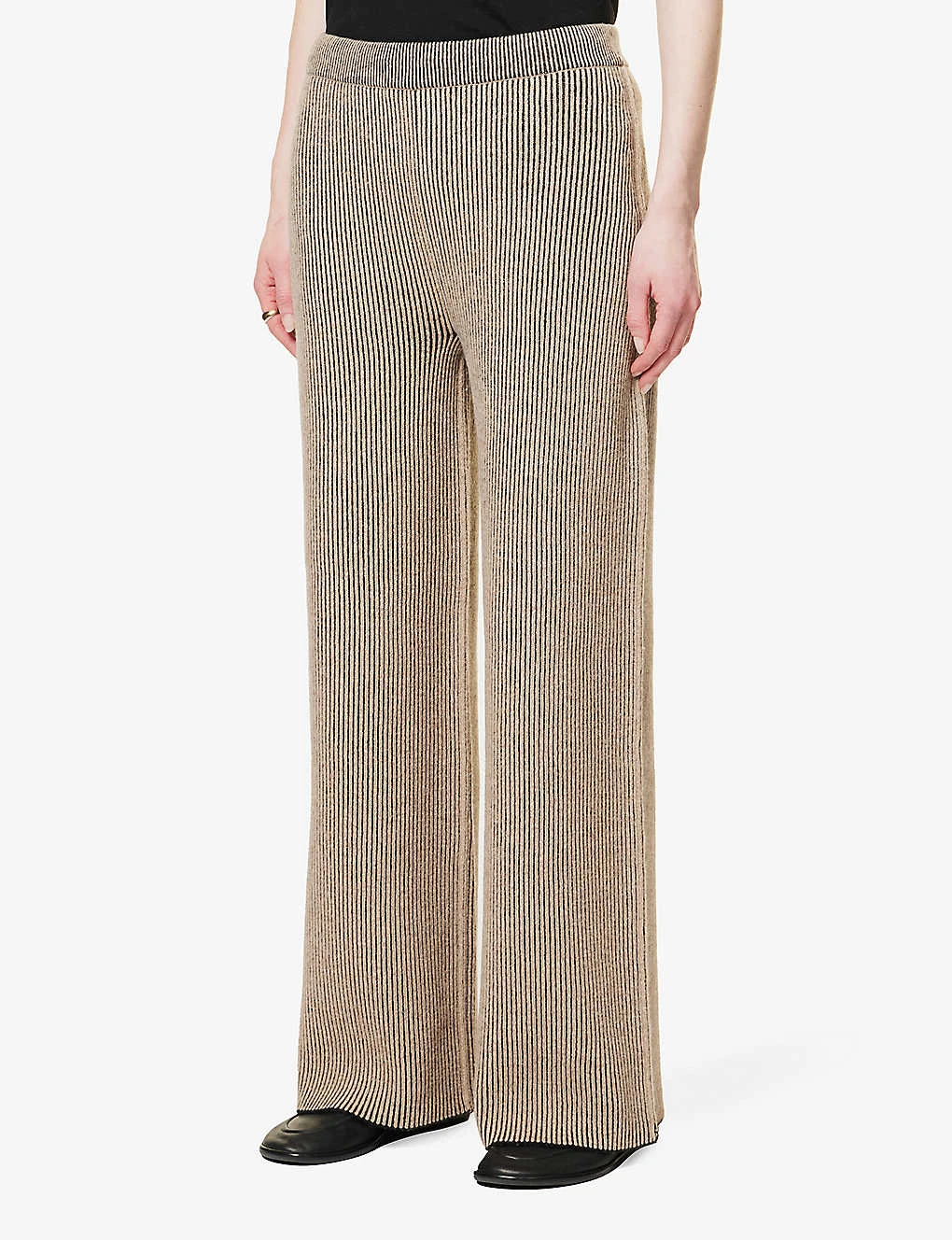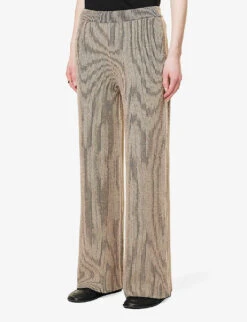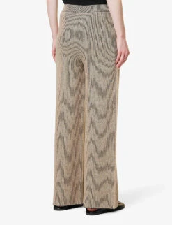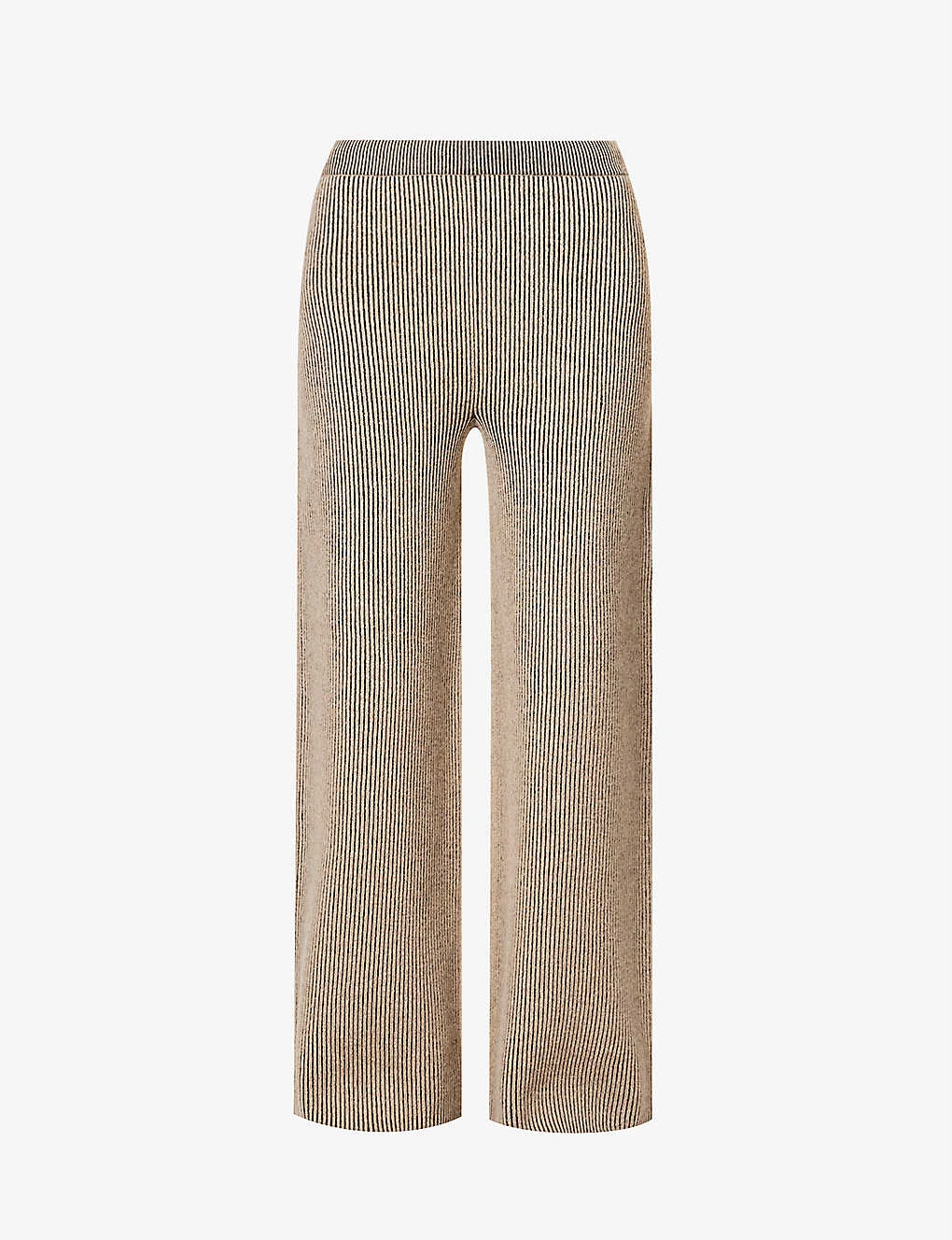 - Regular-fit, high-rise, wide leg, elasticated drawstring waistband, all-over purl knit and contrasting weave