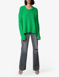 - Relaxed fit, high neck, dropped shoulders, long sleeves, cable knit design, fine knit texture, ribbed trims