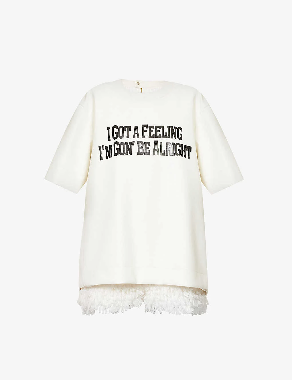 Be the first to review “Sacai Brand-print Frayed-hem Relaxed-fit Faux Leather Pullover” Cancel reply