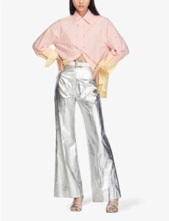 Skinny, high rise, cropped, belt loops, five pockets, branded hardware, V-shaped yoke at back, zip-fastening cuffs