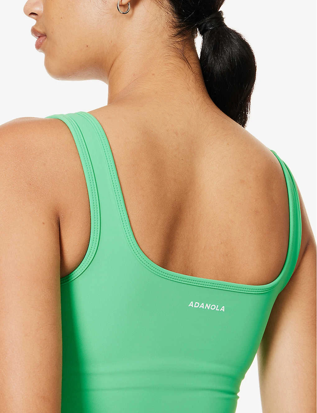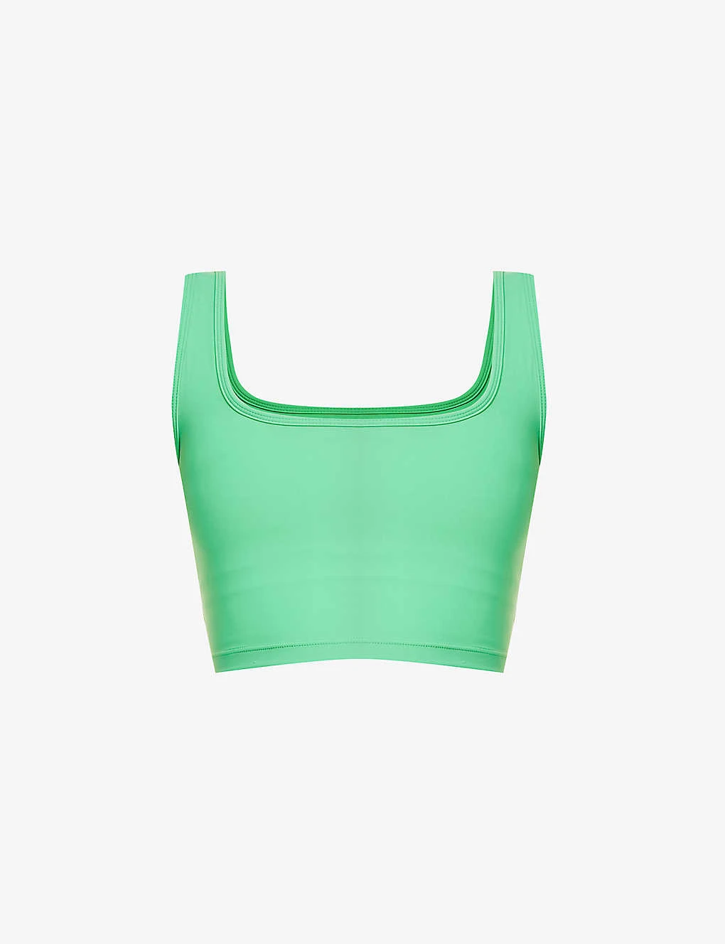 - Scoop neckline, soft padded cups, removable pads, elasticated band