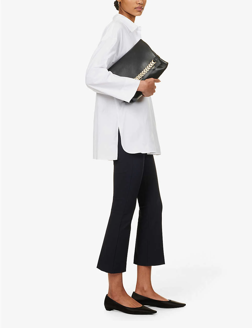 - Concealed button, hook-and-eye and zip-fly fastening at front